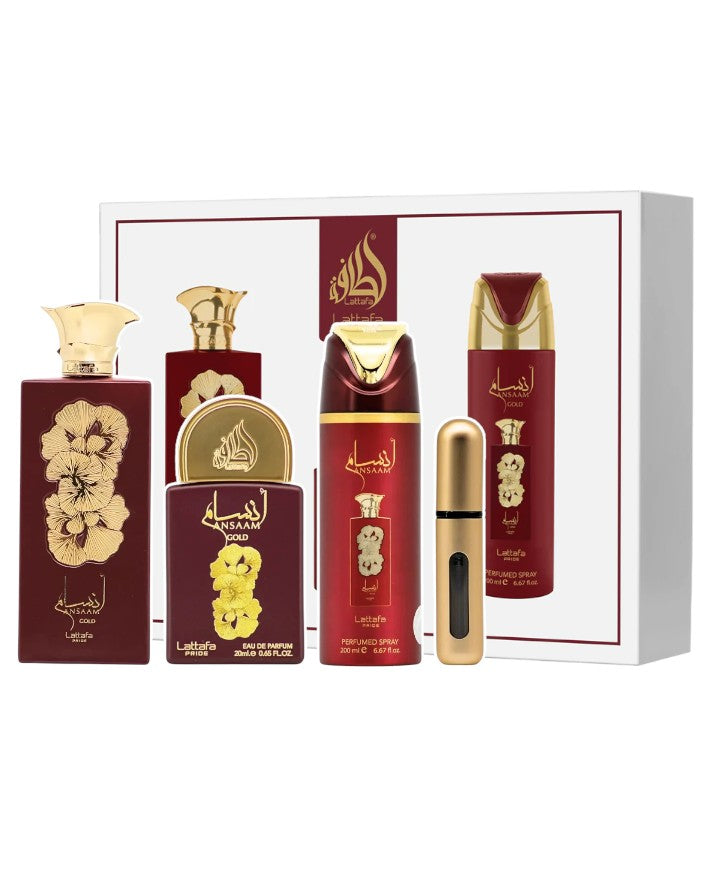 Ansaam Gold de Lattafa es una fragancia cautivadora que combina dulzura, elegancia y sensualidad, creando una experiencia olfativa lujosa y adictiva. Este lote de regalo es la elección perfecta para quienes aman los perfumes sofisticados, femeninos y con una estela inolvidable.