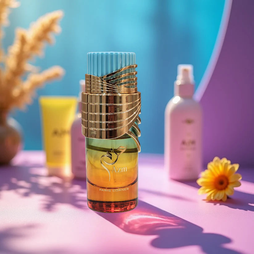 Perfecto para los días de clima cálido y las noches templadas, Azm es un aroma estimulante y radiante que combina sin esfuerzo el encanto afrutado con la elegancia floral, diseñado para complementar tanto a hombres como a mujeres que abrazan la energía del verano con confianza y estilo.
