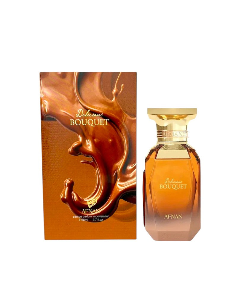 Afnan Delicious Bouquet: Una indulgencia con toques cítricos y un corazón de crema con miel.