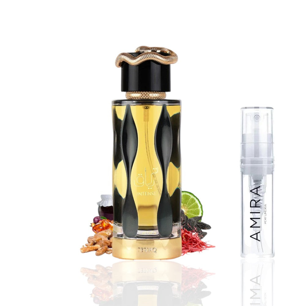 Teriaq Intense , de la prestigiosa casa Lattafa Perfumes , es una fragancia unisex que combina sofisticación, sensualidad y calidez en una obra maestra olfativa. Creada por el renombrado perfumista Quentin Bisch