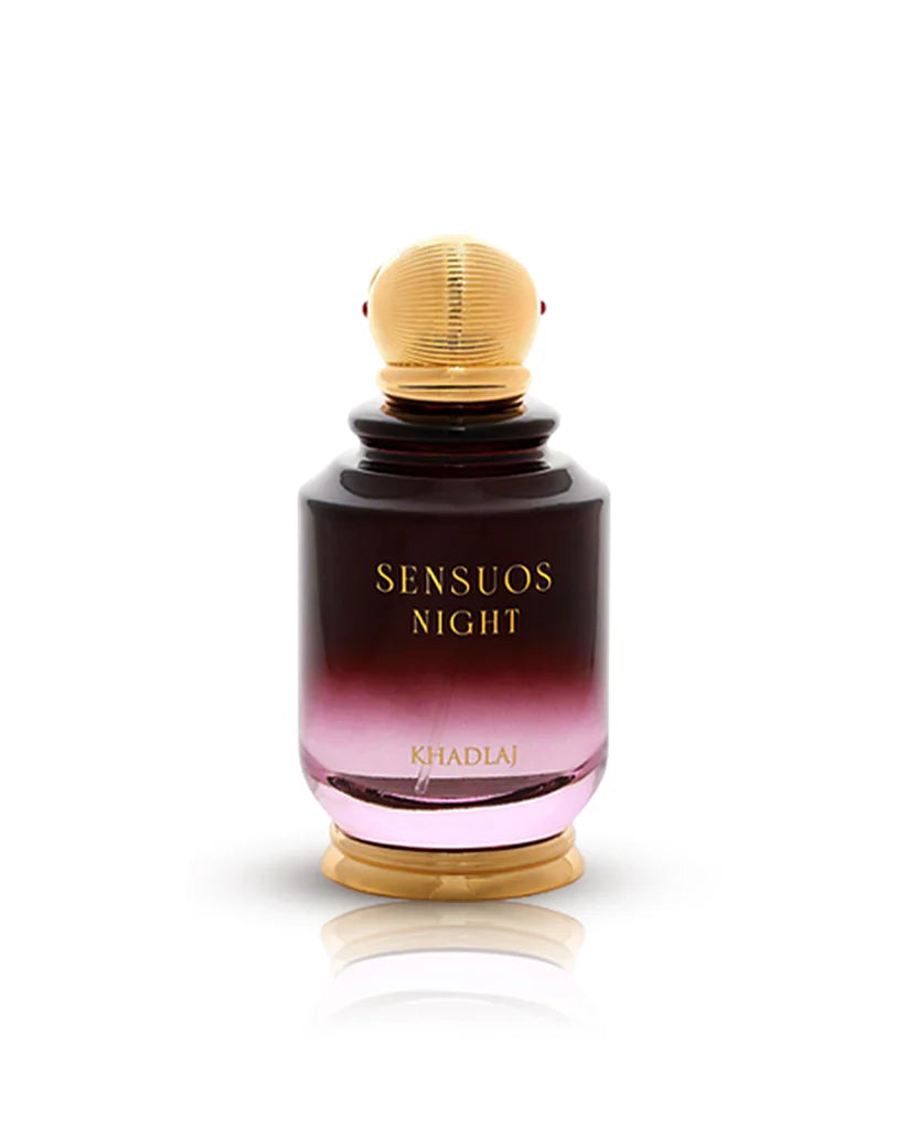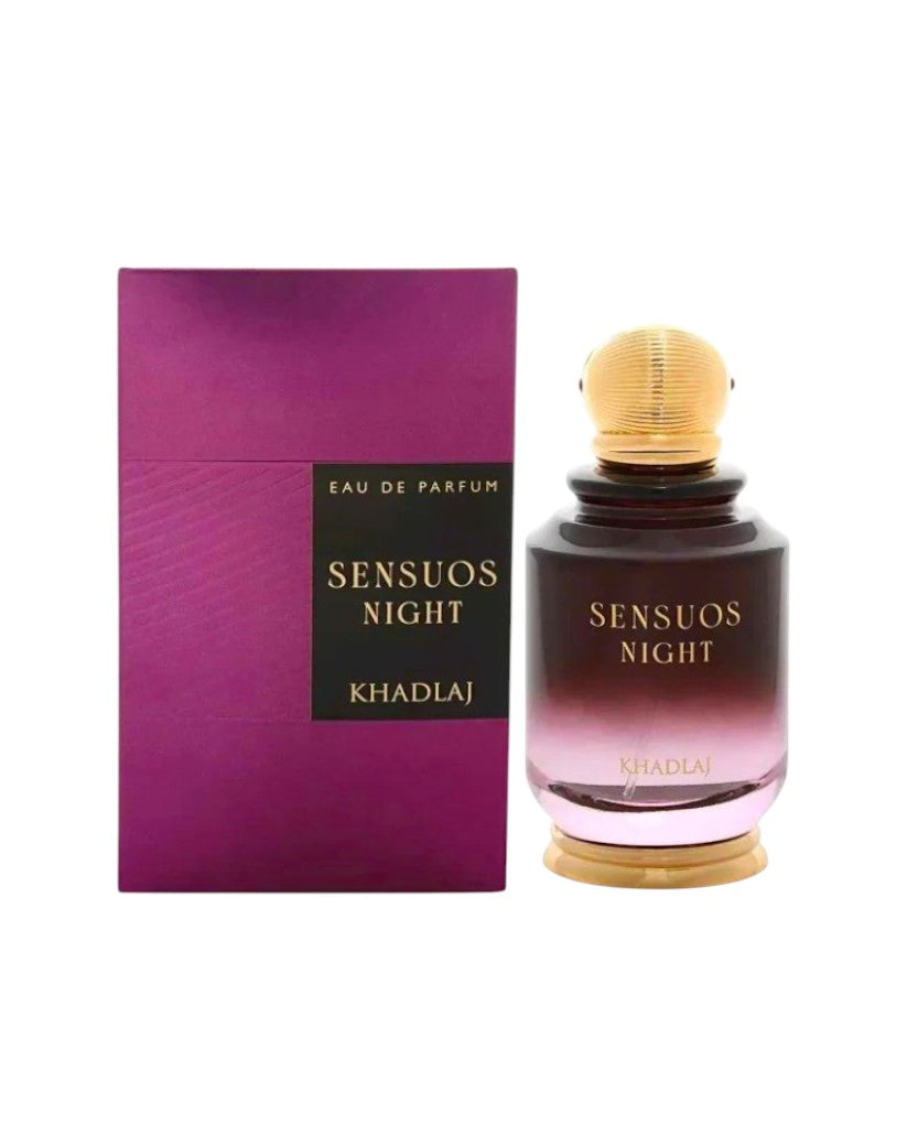 Khadlaj Perfumes te invita a abrazar tu lado cautivador con Sensuos Night. Esta tentadora fragancia se abre con una explosión de frutas jugosas: manzana crujiente, piña bañada por el sol y un toque de limón picante. Es un comienzo juvenil y divertido que mejorará tu estado de ánimo al instante.